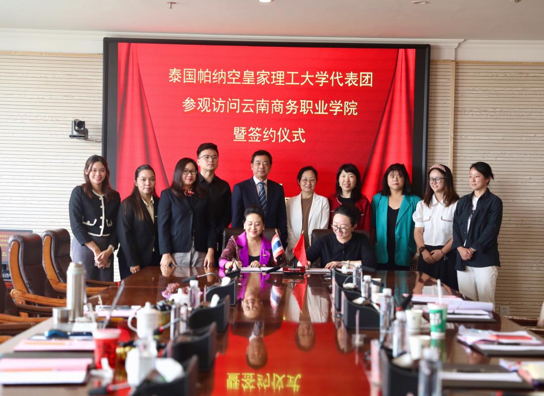 为进一步提升beat365平台官方网站国际化办学水平,结合学校转型发展和专业建设实际需求,主动出击,定向引进,多措并举助推学校对外事业迈上新台阶。6月12日,泰国帕那空皇家理工大学大众传播技术学院副院长Mrs.Daranee Thanyasiri、Miss Nonnaporn Kitisripanya、Miss Apinyapat Kusiyarungsit 泰中教育联盟协会名誉主席吴志毅一行7人到校参观访问并顺利签署合作备忘录,标志着双方将在学生培养、人才引进、教学科研、教师互访等方面展开深度合作。卓雅教育集团高校业务部总监孙莉、校长王琳琳、副校长汪湳、对外交流合作处副处长陈双双参加签约仪式。
