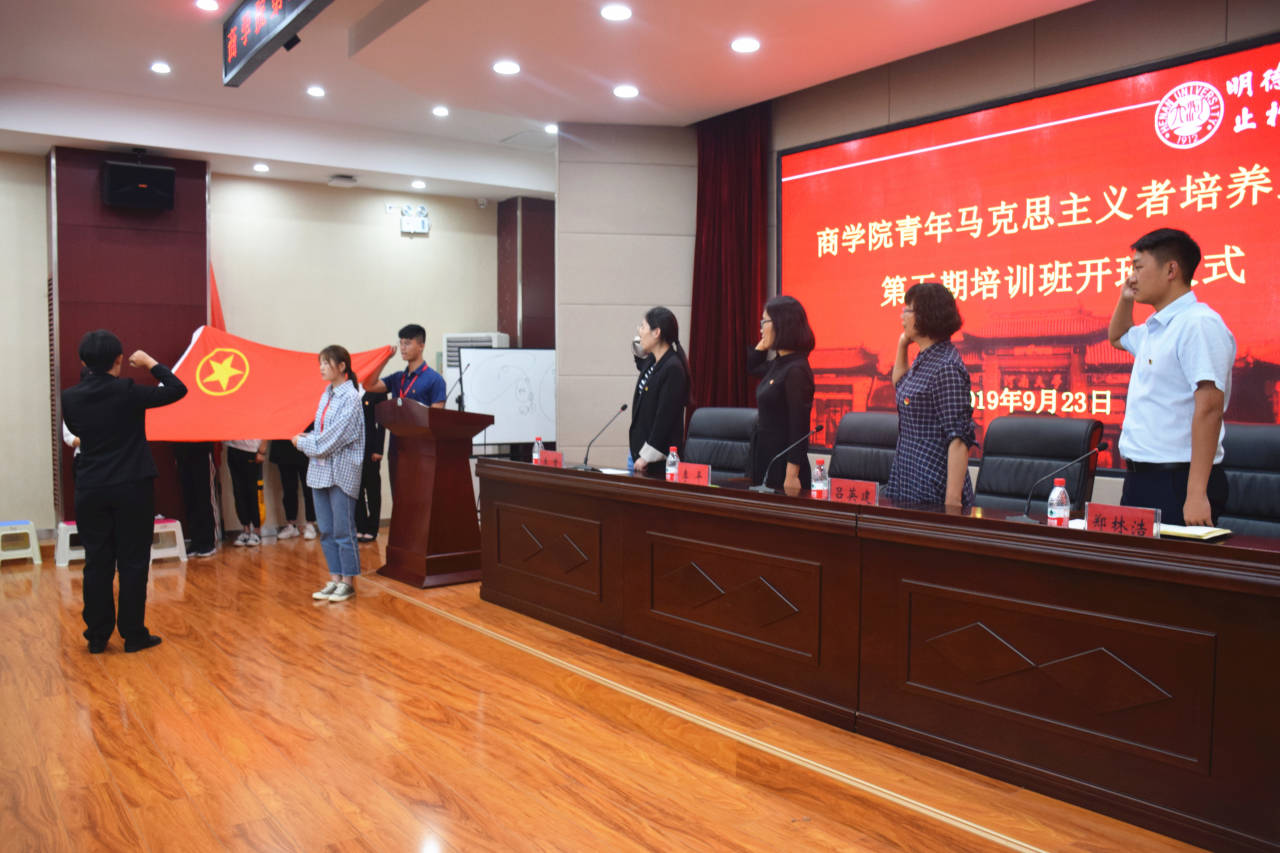 学员代表闫俊颖代表全体学员做出承诺:“在青年马克思主义者培训班学习期间,一定会加强理论素养,坚持拥护马克思主义,努力学习,提高自身综合素质。”