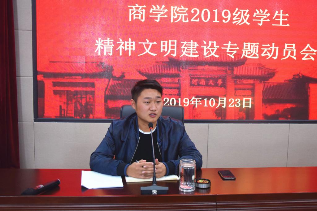 为深化巩固本院精神文明建设成果,进一步提升精神文明建设水平。10月23日nba买球正规官方网站于二阶报告厅召开了精神文明建设动员会,2019级辅导员郑林浩担任本次动员会主讲人。