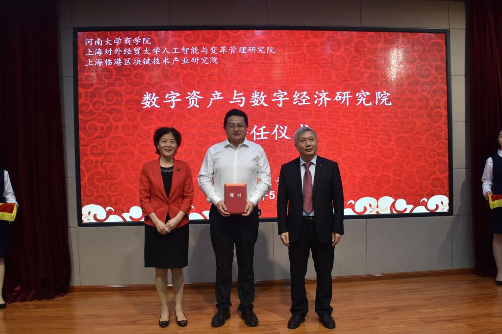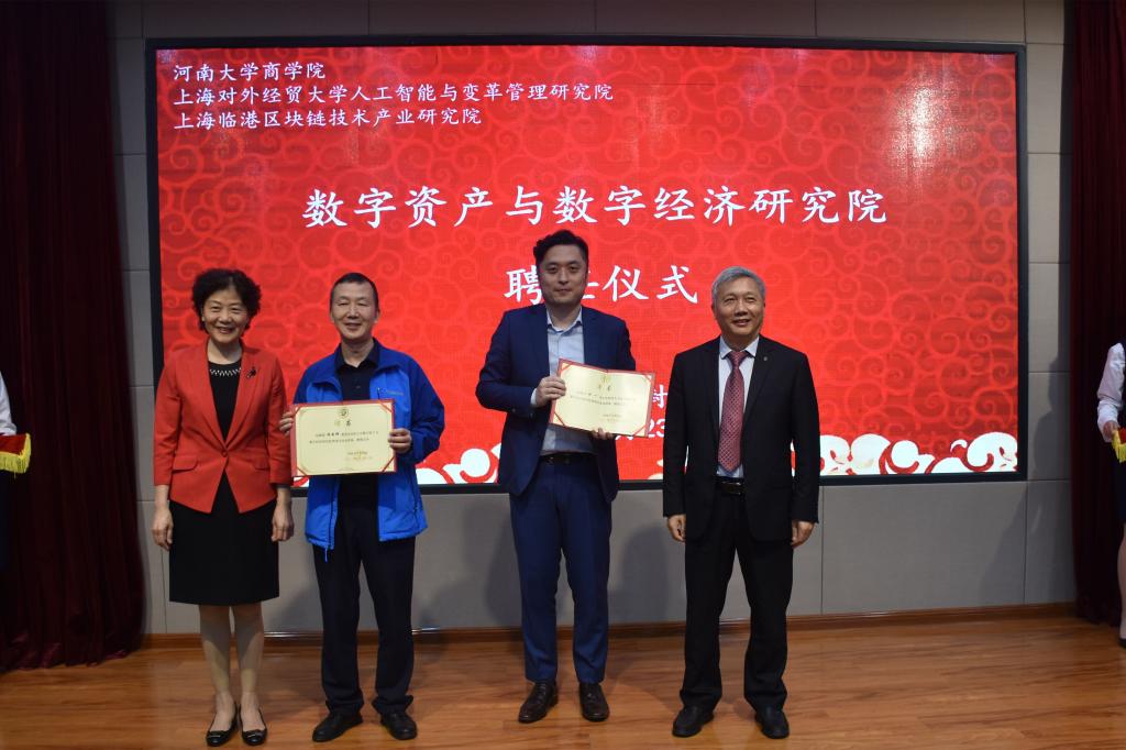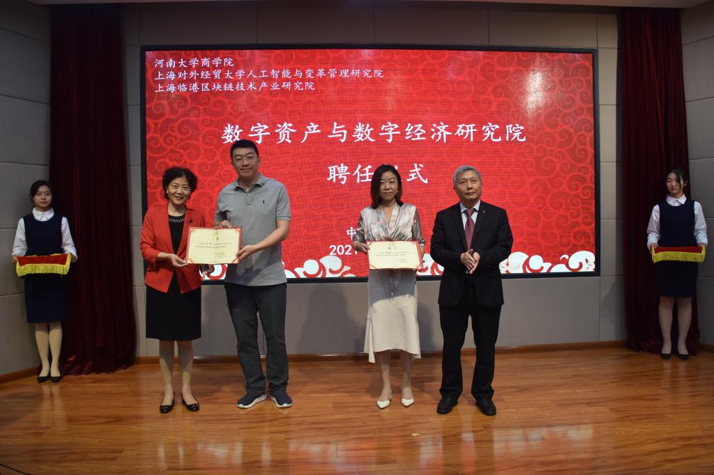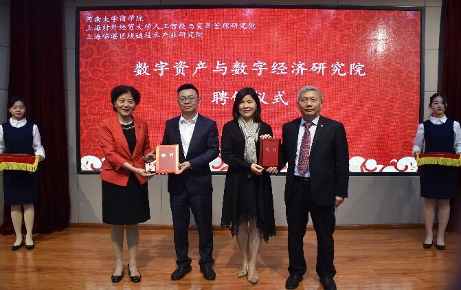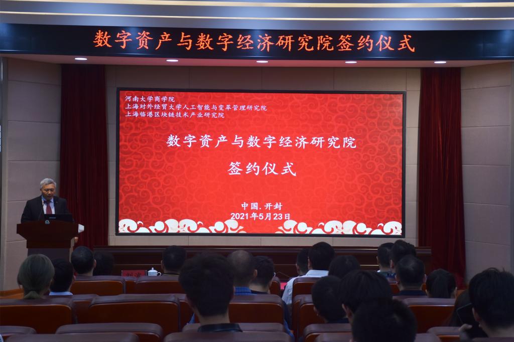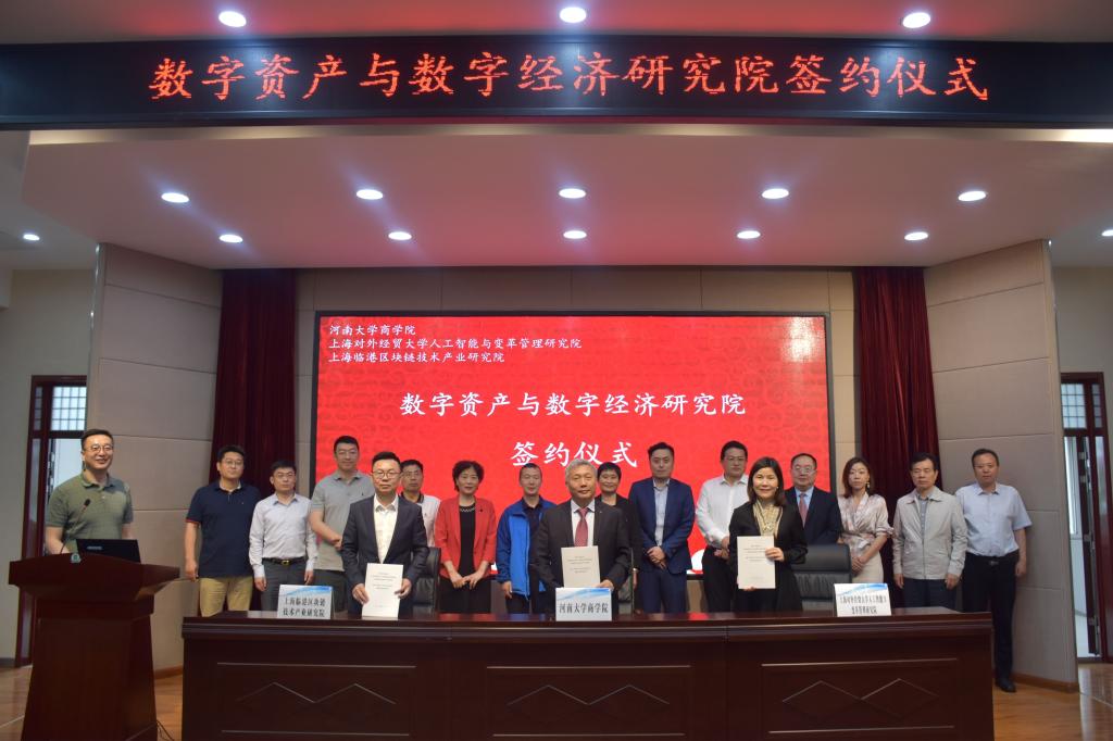 5月23日上午,由nba买球正规官方网站、上海对外经贸大学人工智能与变革管理研究院、上海临港区块链技术研究院合力共建的数字资产与数字经济研究院签约仪式在nba买球正规官方网站二阶报告厅举行。上海对外经贸大学人工智能与变革管理研究院院长齐佳音教授、副院长张国锋教授、上海临港区块链技术研究院院长、河大附中华东校友会会长王大刚先生,nba篮球竞彩购买平台副校长冯淑霞教授、校友工作与教育发展基金会办公室主任、教育发展基金会秘书长刘波教授、人文社科研究院院长展龙教授、nba买球正规官方网站党委书记冯海清、nba买球正规官方网站院长王性玉、nba买球正规官方网站部分老师以及多位社会金融人士参加了此次签约仪式,签约仪式分三个阶段进行。