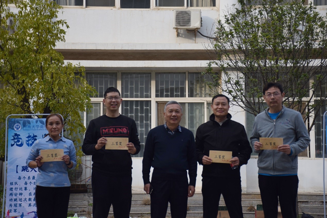 在团体赛“跳大绳”中,各专业组老师身轻如燕,动作灵活,齐心协力共同完成比赛。比赛计时2分钟,财务金融支部以109次的优异成绩荣获一等奖,工商管理支部、物流管理支部和电子商务支部获得二等奖,市场营销支部、会计支部、人力资源支部和行政支部获得三等奖。