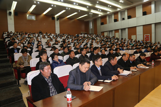 12月1日下午,校党委副书记雷霆在图书馆一楼报告厅以《深入学习贯彻党的十九大精神,切实加强干部队伍建设和作风建设》为题作辅导报告。参加会议的有最近调整的处级干部,各二级单位党组织主要负责同志,学校党政职能部门全体同志,机关党委和群团组织全体同志,组织关系在机关党委的直属和附属机构主要负责同志。此次会议,既是党的十九大精神宣讲会,也是干部任职前的谈话会,还是严肃纪律改进作风的动员会。会议由校党委组织部部长程秀波主持。
