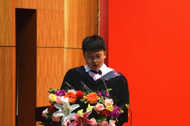 “明朝即长路,惜取此时心”。在校生代表姚旺进行发言,他代表全体在校生向学长学姐们表示热烈的祝贺,祝贺他们圆满完成学业,走进缤纷的世界,开启新的征程,并衷心希望学长学姐坚定信念,脚踏实地,尽情追逐自己的梦想,奔赴似锦前程。