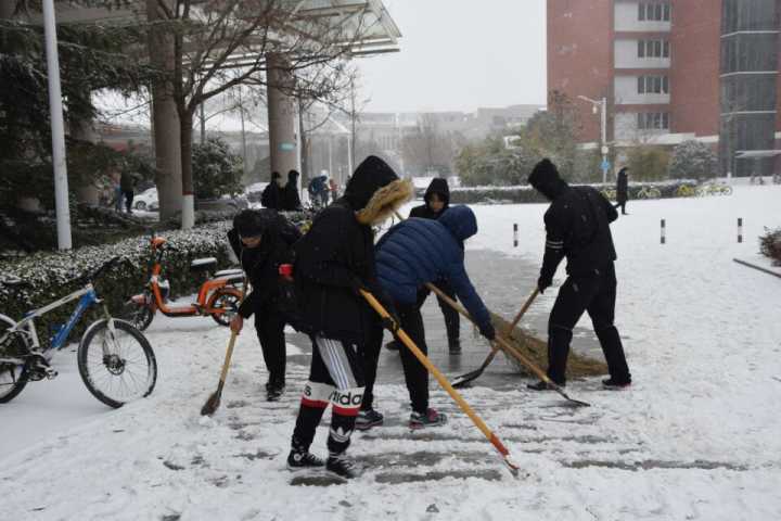 开封市的第一场雪让nba篮球竞彩购买平台披上了银色的盛装,厚厚的白雪覆盖了街道房屋和树木,让人赏心悦目的同时也给师生们的出行造成了不便。为保障师生们的安全出行,1月4日上午,nba买球正规官方网站组织学生举行了“铲积雪,保平安”活动,在学院门口主要通行道路上清扫积雪。
