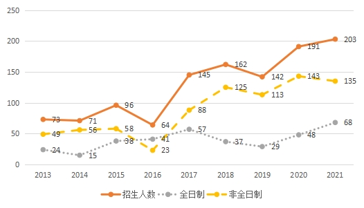 注:2013-2016年度全日制、非全日制分别为秋季招生和春季招生。