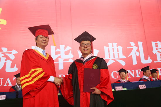 对毕业研究生来说,毕业是人生中最期待、最隆重、最神圣的时刻。在欢快的优美乐曲中,校长、校学位评定委员会主席娄源功为博士学位获得者、获得硕士学位的留学生一一援正流苏、颁发学位证书,并合影留念。在主席台就座的校领导、校学位评定委员会委员、导师代表为硕士学位获得者援正流苏、颁发学位证书。