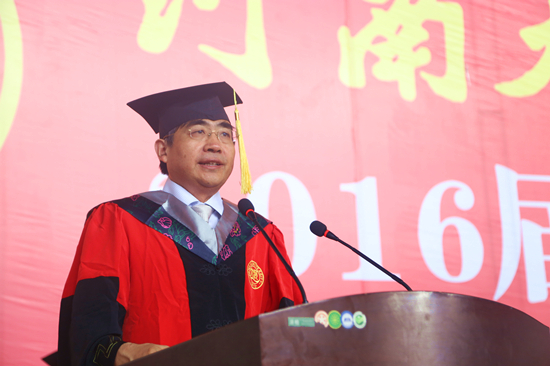 “今天过去,一切都将成为回忆。陪伴你们孤单过、迷惘过、哭过、笑过的古朴典雅的大礼堂,以及河大园里的一草一木,一切都将过去,但过去的一切都是最值得珍藏的记忆。”导师代表苗雨晨教授分享了自己的求学历程,并向同学们提出几点建议和希望:终身学习,不断创新;不忘初心,方得始终;仰望星空,脚踏实地;追逐梦想,快乐前行。