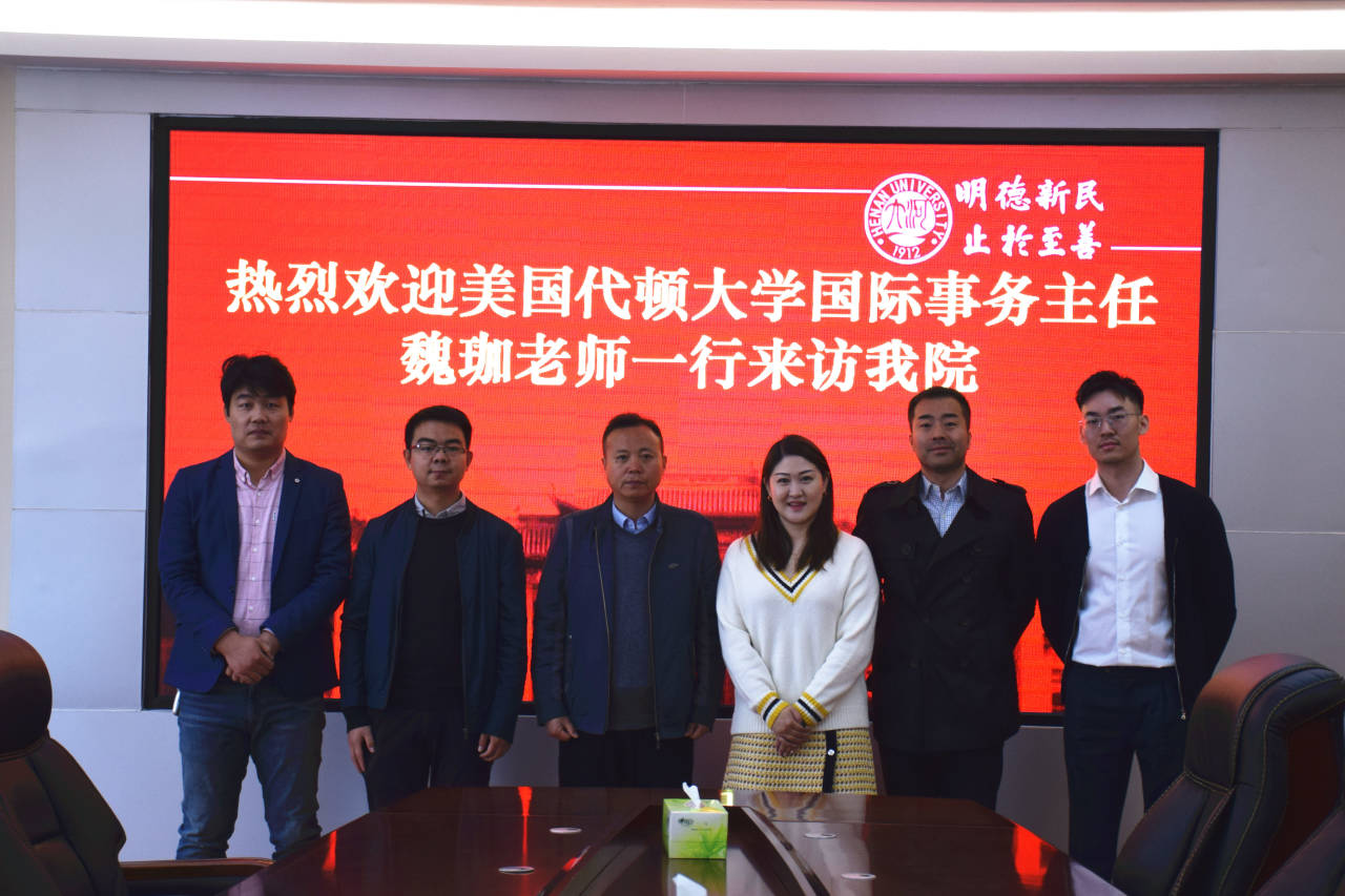 2019年10月16日上午,美国代顿大学国际事务主任魏珈一行三人到访nba买球官网,nba买球正规官方网站副院长李志强以及副教授苑春林、董占奎于201会议室接待并举行了座谈会。