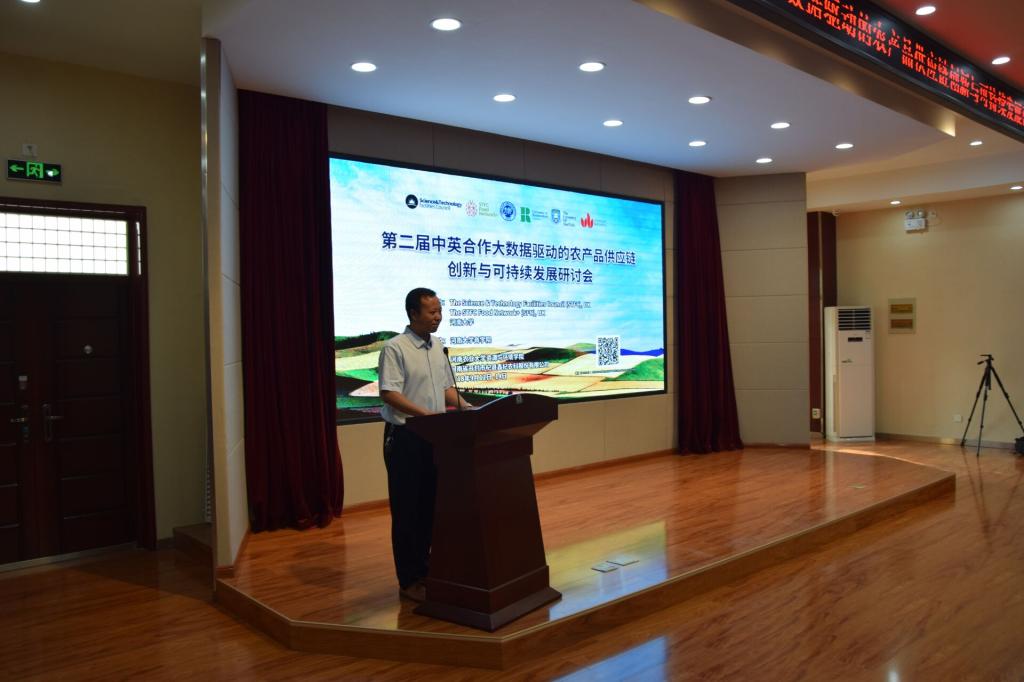 9月13日上午,由The Science &Technology Facilities Council(STFC)、The STFC Food Network+(SFN)及nba篮球竞彩购买平台主办,nba买球正规官方网站承办,河南农业大学资源与环境学院、河南省开封市杞县鑫杞农科股份有限公司协办的“第二届中英合作大数据驱动的农产品供应链创新与可持续发展”研讨会在nba买球正规官方网站二楼报告厅举行。英国贝德福德大学nba买球正规官方网站Ramakrishnan Ramanathan教授、Yanqing Duan教授,我校黄河学者(英国罗汉普顿大学nba买球正规官方网站)Wantao Yu教授,英国科学技术基础设施理事会(STFC)区块链技术专家Tom Collingwood,nba买球正规官方网站院长王性玉教授,河南农业大学叶优良教授,开封市鑫杞农科股份有限公司总经理张继承,河南汇众基业农业科技有限公司总经理韩振磊,湖南nba买球正规官方网站、哈尔滨商业大学、重庆邮电大学、河南农业大学、河南工业大学、河南心连心化肥有限公司等来自国内外的诸多专家学者和企业人士参加了会议,会议由nba买球正规官方网站副院长李志强主持。