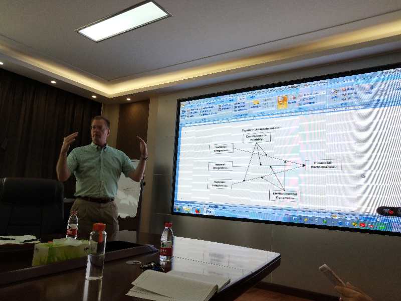 8月2日上午,美国戴顿大学副教授Mark A. Jacobs应邀在院201会议室作了题为《英文学术论文的语言之美》的学术报告,本次报告会为学院物流与供应链论坛系列报告之一。我校黄河学者余万涛、物流管理系支部书记宋永涛、系主任杨洁辉及物流管理系全体教师参与本次报告会,报告会由余万涛主持。