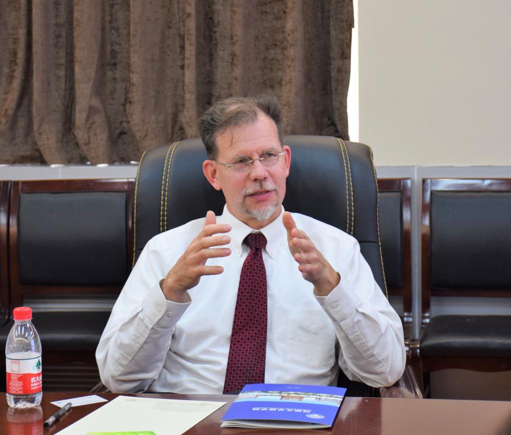 6月12日下午,芬兰东南应用科技大学校长Heikki Saastamoinen一行五人到nba买球官网交流访问。院长王性玉、党委副书记吕英建、副院长李新功、教师代表宋永涛,国际交流处副处长张波参加并主持座谈。