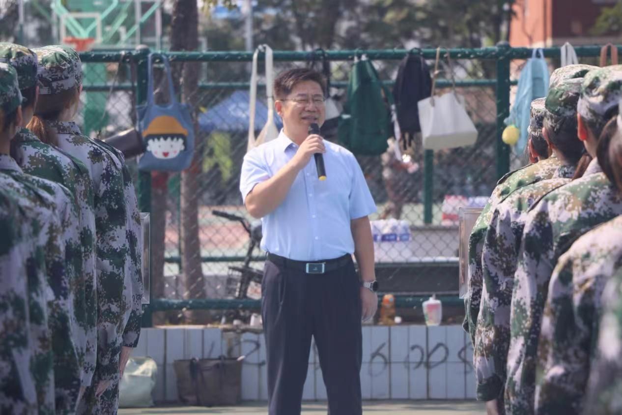 随后,左辞波向同学们致以亲切问候,期盼商院学子通过军训磨炼意志,增强身体素质,练就坚定的理想信念、顽强的拼搏精神,不断地追赶和超越。他对学生们的刻苦训练给予充分的肯定,反复叮嘱同学们在军训期间注意安全、保持合理作息。