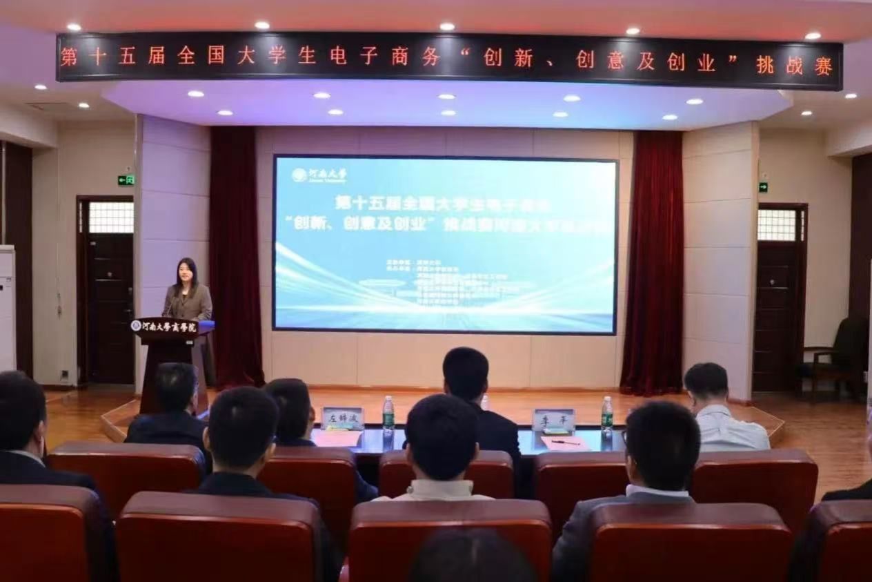 4月12日上午,第十五届全国大学生电子商务“创新、创意及创业”挑战赛nba篮球竞彩购买平台总决赛在nba买球正规官方网站二楼学术报告厅举行。nba篮球竞彩购买平台就业创业指导中心主任张磊,nba篮球竞彩购买平台教务处副处长朱显峰,nba篮球竞彩购买平台团委副书记董文,nba篮球竞彩购买平台党委研究生工作部副部长吴坤作为主办方代表到场指导。nba买球正规官方网站党委书记左辞波出席开幕式。由nba买球正规官方网站电子商务系主任郑佳佳领衔的专家评委组,开封交建产业投资有限公司总经理、nba篮球竞彩购买平台MBA校友会会长李俊涛领衔的企业家评委组以及师生代表共同参加开幕式。开幕式由nba买球正规官方网站党委副书记马欢欢主持。