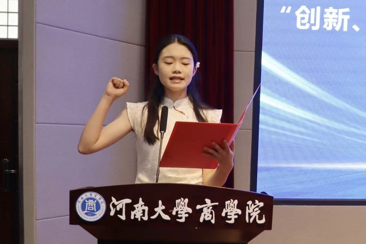 nba篮球竞彩购买平台2023级会计学专业周心怡代表参赛选手宣誓