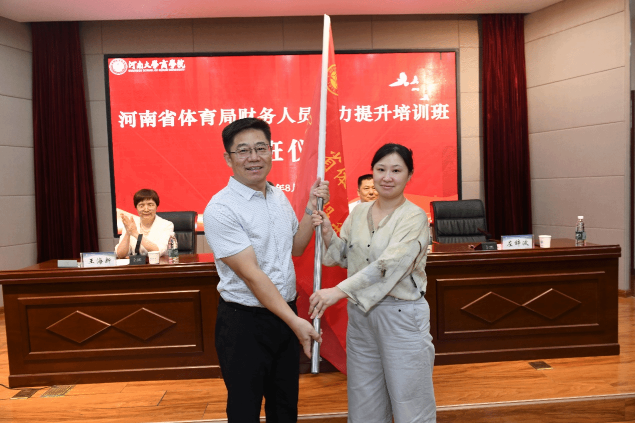 仪式上,左辞波向培训班授旗。