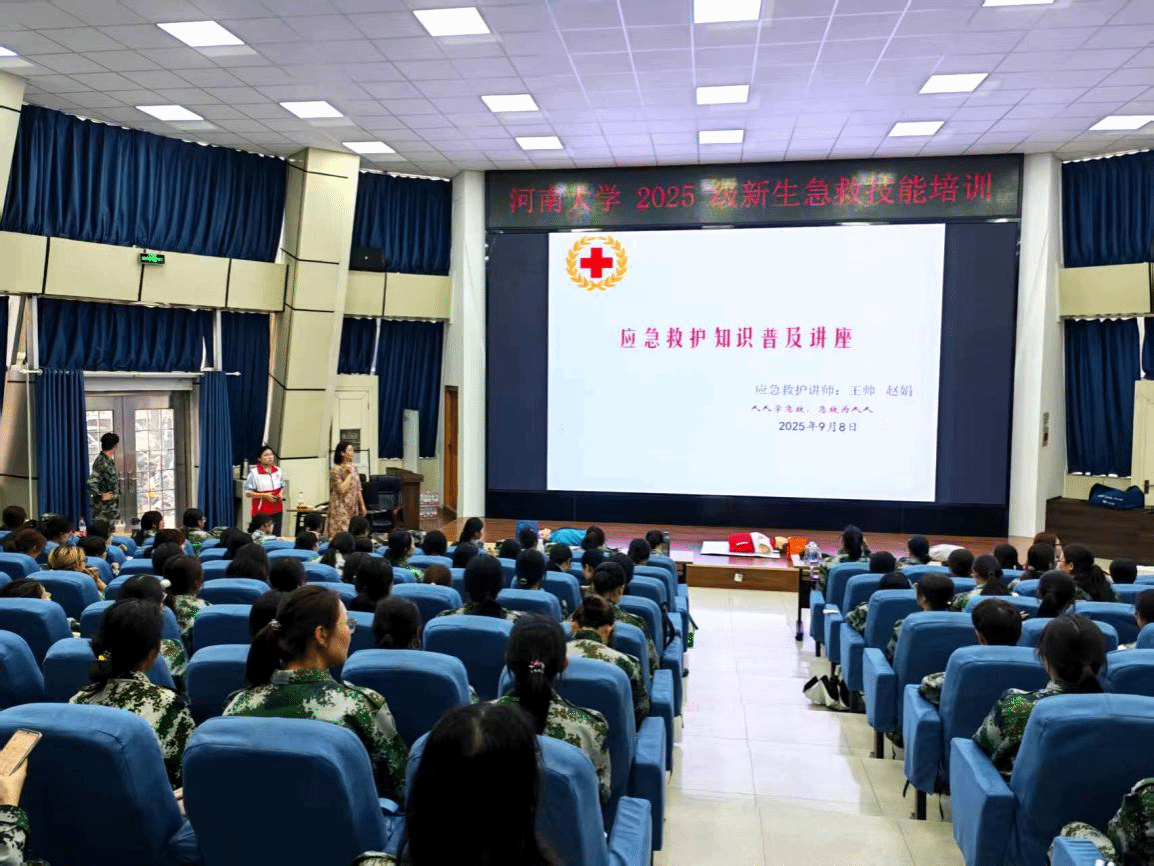为增强2025级新生安全防范意识,掌握基本应急救护技能,9月8日上午,nba买球正规官方网站2025级全体新生在金明校区锥形报告厅一楼参加由校医院统筹组织、特邀开封市示范区红十字会专业急救护讲师王帅和开封市蓝鲸水上救援队赵娟进行专业急救技能培训。本次培训内容涵盖心肺复苏+AED、海姆立克急救法及多种创伤包扎方法,为新生带来一堂生动而实用的生命安全实践课。