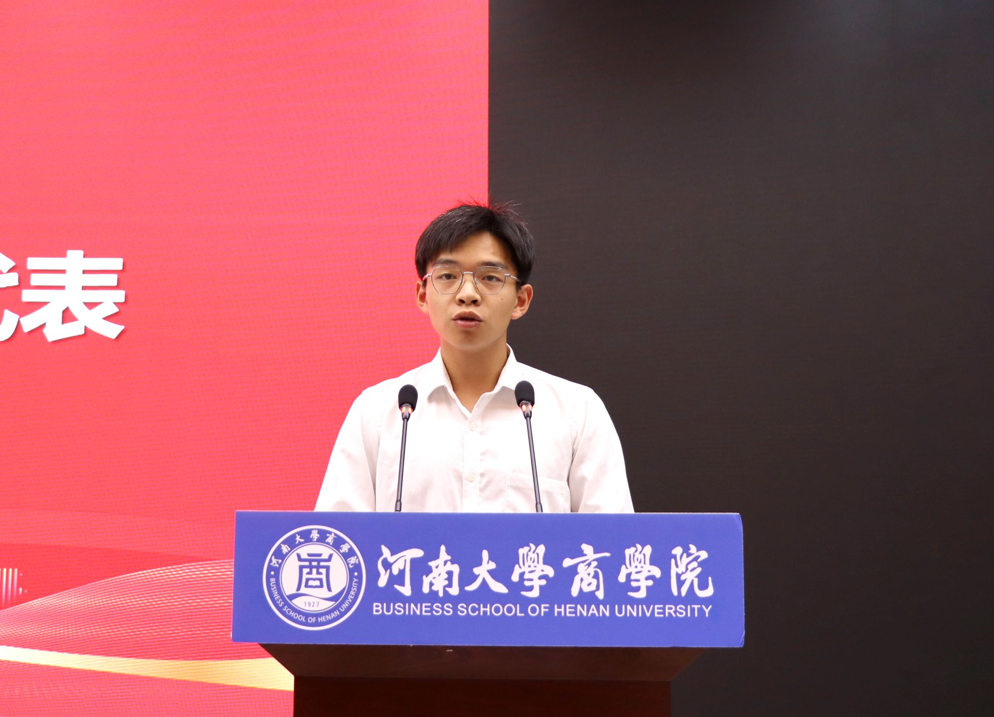 报告会由老生代表、2023级工商管理专业本科生、院学生会主席团成员肖息开启。他结合自身学生干部经历,鼓励新生珍惜大学平台,积极投身校园活动,在实践探索中实现自我超越。