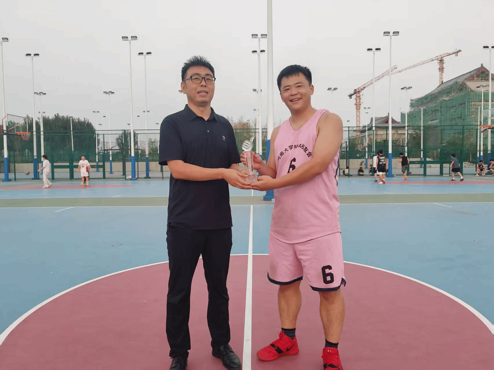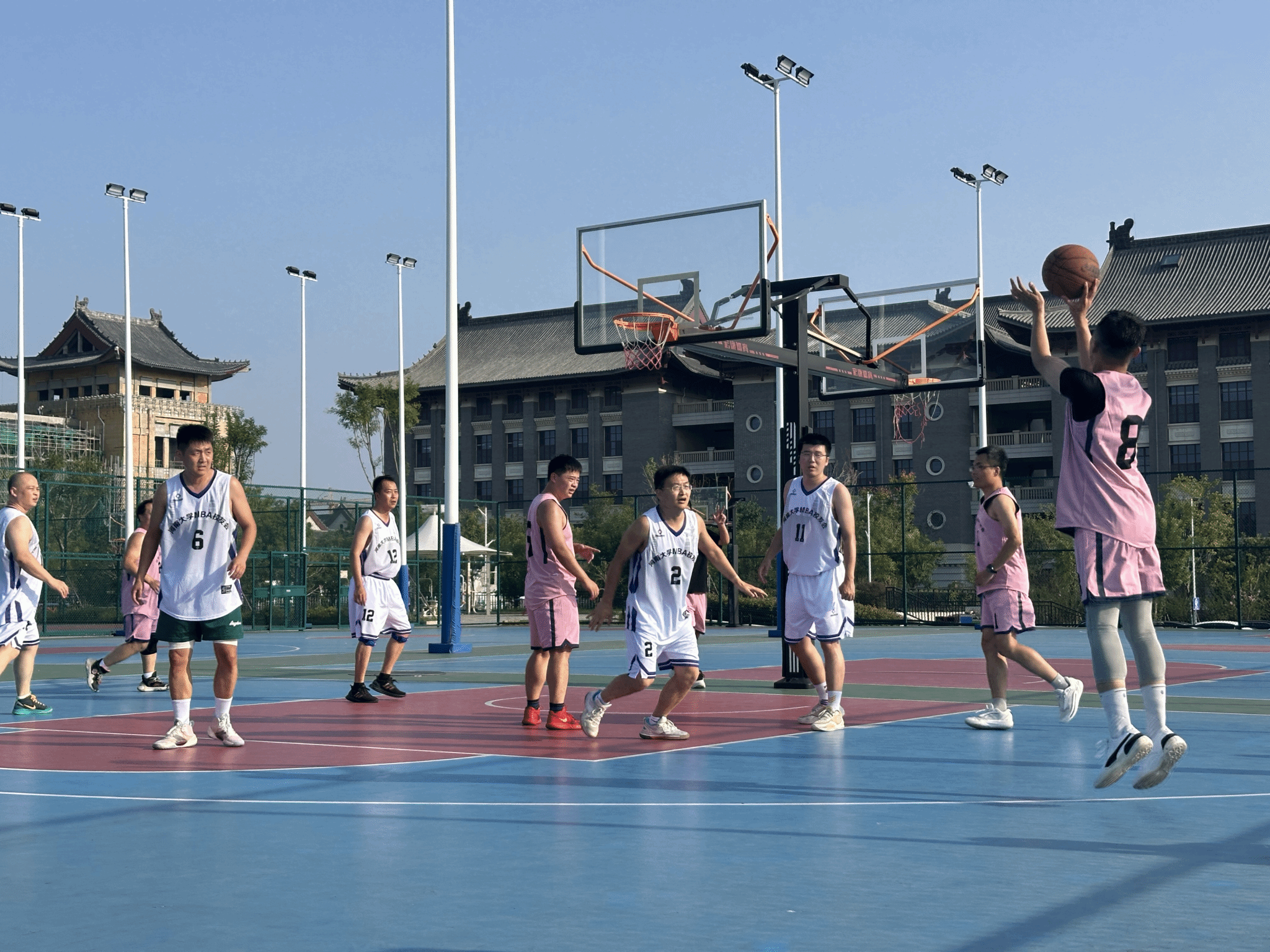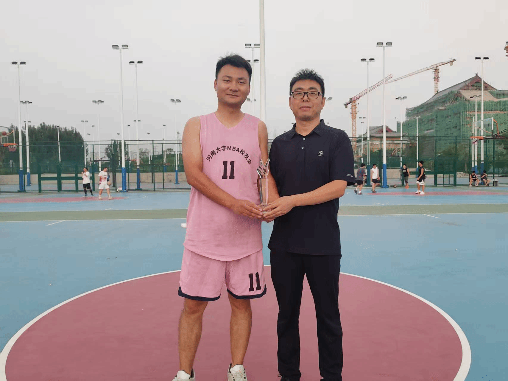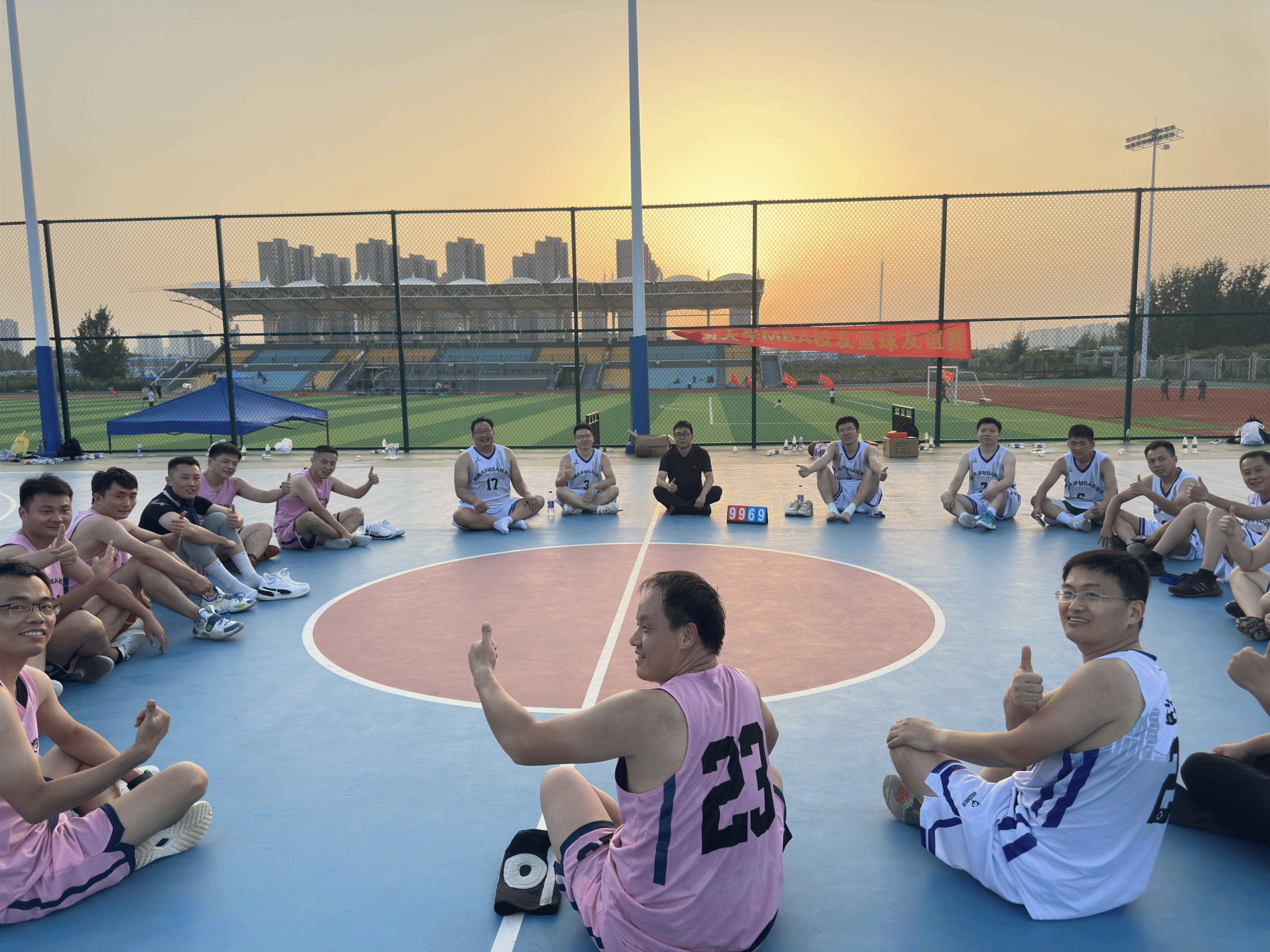 颁奖环节结束后,夕阳渐渐西沉,为龙子湖校区镀上了一层温暖的金边,粼粼湖光与绚烂晚霞交相辉映,营造出温馨的氛围。所有参赛队员与活动组织人员围坐在篮球场中心场地,卸下赛场的紧张与疲惫,开启了轻松愉快的交流。在交流过程中,惊喜不断 —— 有人意外找到了来自同一城市的老乡,乡音乡情瞬间拉近了彼此的距离;有人发现与身边的校友曾在同一家企业工作,共同的职场经历让两人有了更多共同话题;更有校友在交流中发现双方业务存在契合点,当场就开启了关于合作可能性的初步探讨。这场以球会友的盛会,不仅留下了赛场上的热血瞬间,更种下了校友情谊的种子。未来,nba篮球竞彩购买平台 MBA 校友会将继续以多样的活动为载体,连接校友、服务校友,让校友情谊在时光中沉淀,让合作之花在交流中绽放,共同书写nba篮球竞彩购买平台 MBA 校友群体的精彩篇章。