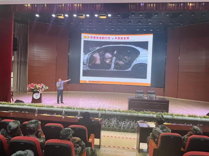 云南东方时尚交通安全宣讲团陶云展老师,通过我国交通安全形势、危害安全的行为,发生交通事故的处置办法三个方面结合大学生道路交通事故典型案例,让师生学习了解出行常见的交通安全风险,掌握“知危险、会避险”的安全知识,提升自我防护能力。同时,陶老师号召大家能够积极带动身边的人自觉遵守交通法律法规,共同营造安全畅通的道路交通环境。