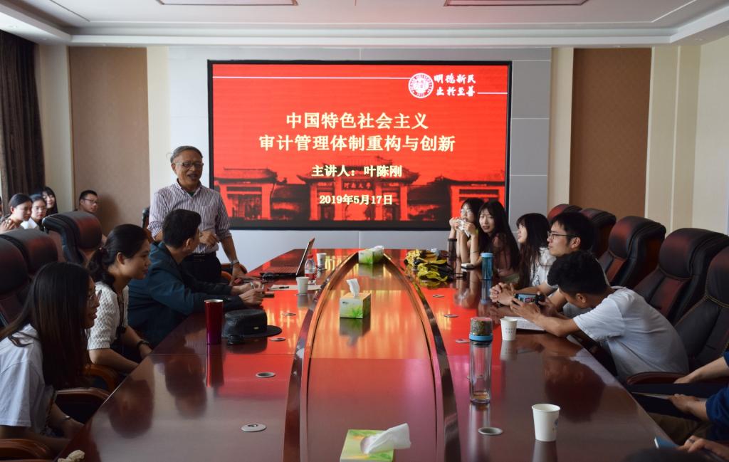 5月17日上午,对外经济贸易大学博士生导师叶陈刚教授应邀到nba买球官网二楼201会议室进行主题为“中国特色社会主义审计管理体制重构与创新”的讲座。nba买球正规官方网站部分老师、学生参与此次讲座,讲座由会计系主任方健主持。 首先,方健代表nba买球正规官方网站全体师生对叶陈刚教授的到来表示热烈欢迎,并简要介绍了叶陈刚教授的人生简历和学术成就。 讲座伊[详情]