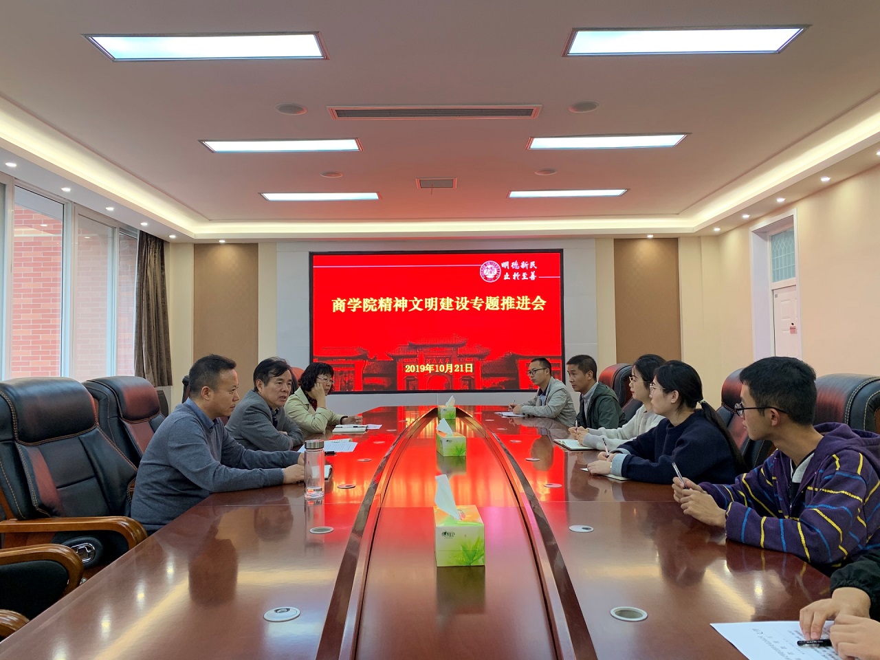10月21日下午,学院在201会议室召开了精神文明建设工作专题推进会。学院党委书记冯海清,党委副书记吕英建,副院长李志强,各行政科室负责人和学生代表参加了会议。会议由吕英建主持。 会上,吕英建对省文明办印发的《河南省高校文明校园(标兵)测评体系》和校文明办印发的《nba篮球竞彩购买平台2019年文明校园年度复查工作任务分解》进行了解[详情]