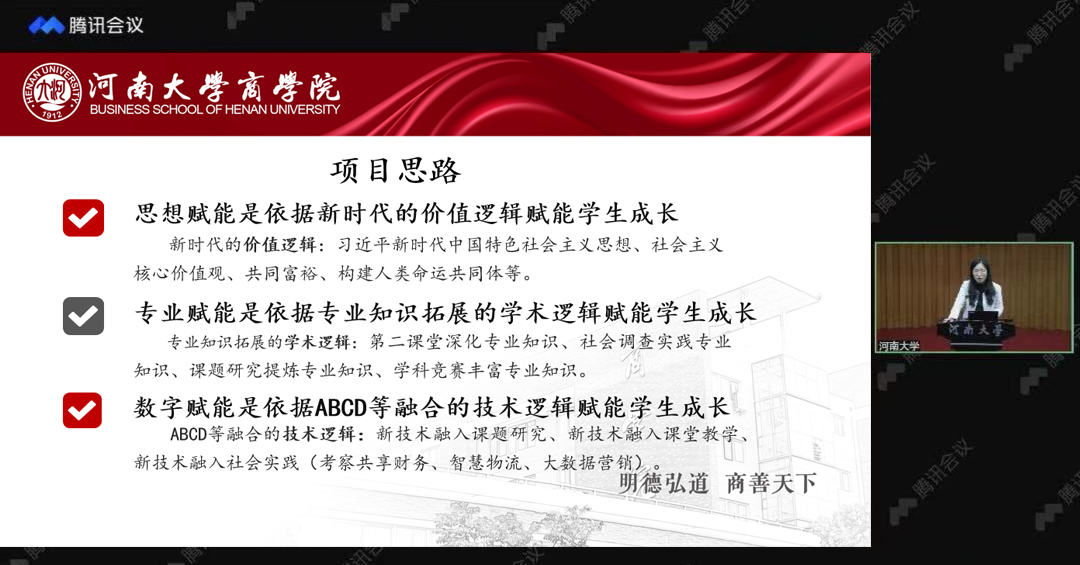 为推动广大教师转变教育教学理念,提高课程思政育人能力,将现代信息技术与教学有效融合,促进教师教学创新能力全面提升,4月11日,nba买球正规官方网站在六楼智慧教室举行2022年度教师教学技能竞赛。本次竞赛共有11位教师参加,学院党委书记冯海清、院长王性玉、副院长席龙胜、王志强出席比赛,部分青年教师现场观摩学习。比赛内容包括说课与模拟授课两个环节。[详情]