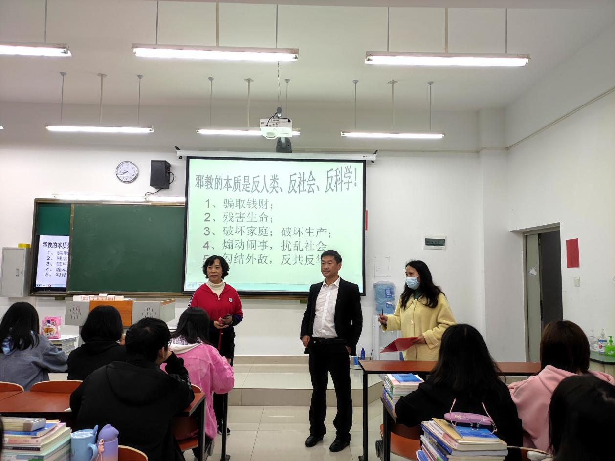 为贯彻落实中央和省委、市委政法委关于加强反邪教宣传教育工作的有关规定,根据嵩明职教新城管理委员会的通知要求,中共beat365平台官方网站委员会医学学院党支部于2021年10月31日深入开展反对邪教、崇尚科学宣传活动。