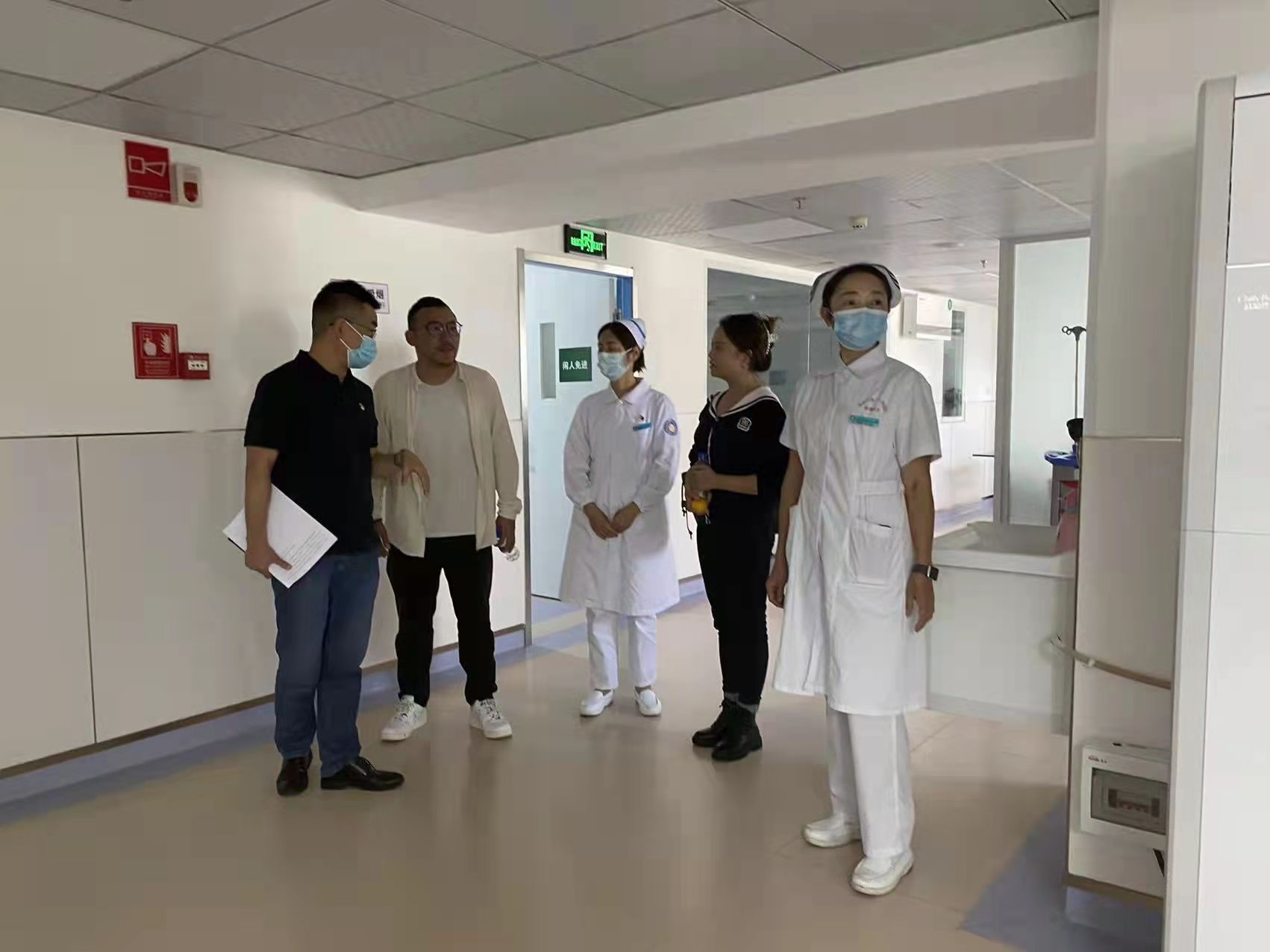 会后,医院党委书记、院长王锡勇同志、护理部主任李红坤同志等医院领导和带教老师,陪同我校护理学院副院长石宇超同志、辅导员刘晓妍老师一行参观医院新投建的设施设备,并和同学们合影留念。