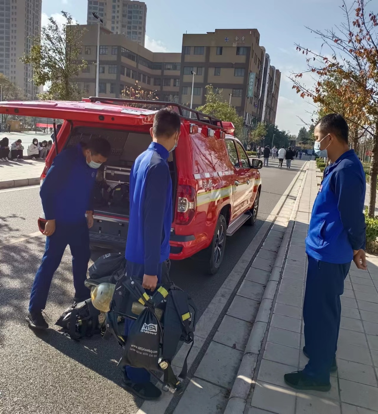 本次训练的内容包括:1.一人两盘水袋连接2.单人原地着装灭火器操3.3000米接力赛4.微型消防站拉动操5.疏散物资救人操等五个板块。
