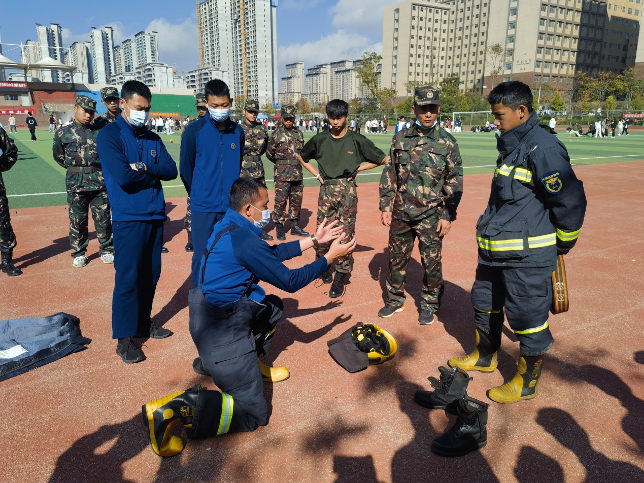 为全面提升同学们的专业水平和团队意识,11月25日应急管理学院特邀嵩明县消防大队到校开展“消防技能培训”活动。学校校长李锡云、副书记郭新阳、副校长武绍宏等领导到场指导。