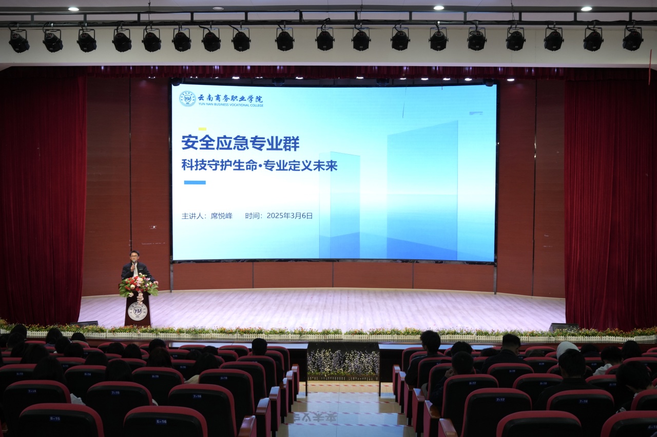 安全应急专业群建设宣讲会由教学副院长席悦峰主讲,主题为“科技守护生命·专业定义未来”。他结合云南地质灾害频发区、边境安全敏感区、公共卫生防控重点区的特殊区位特征,阐述了建设安全应急专业群的现实必要性。