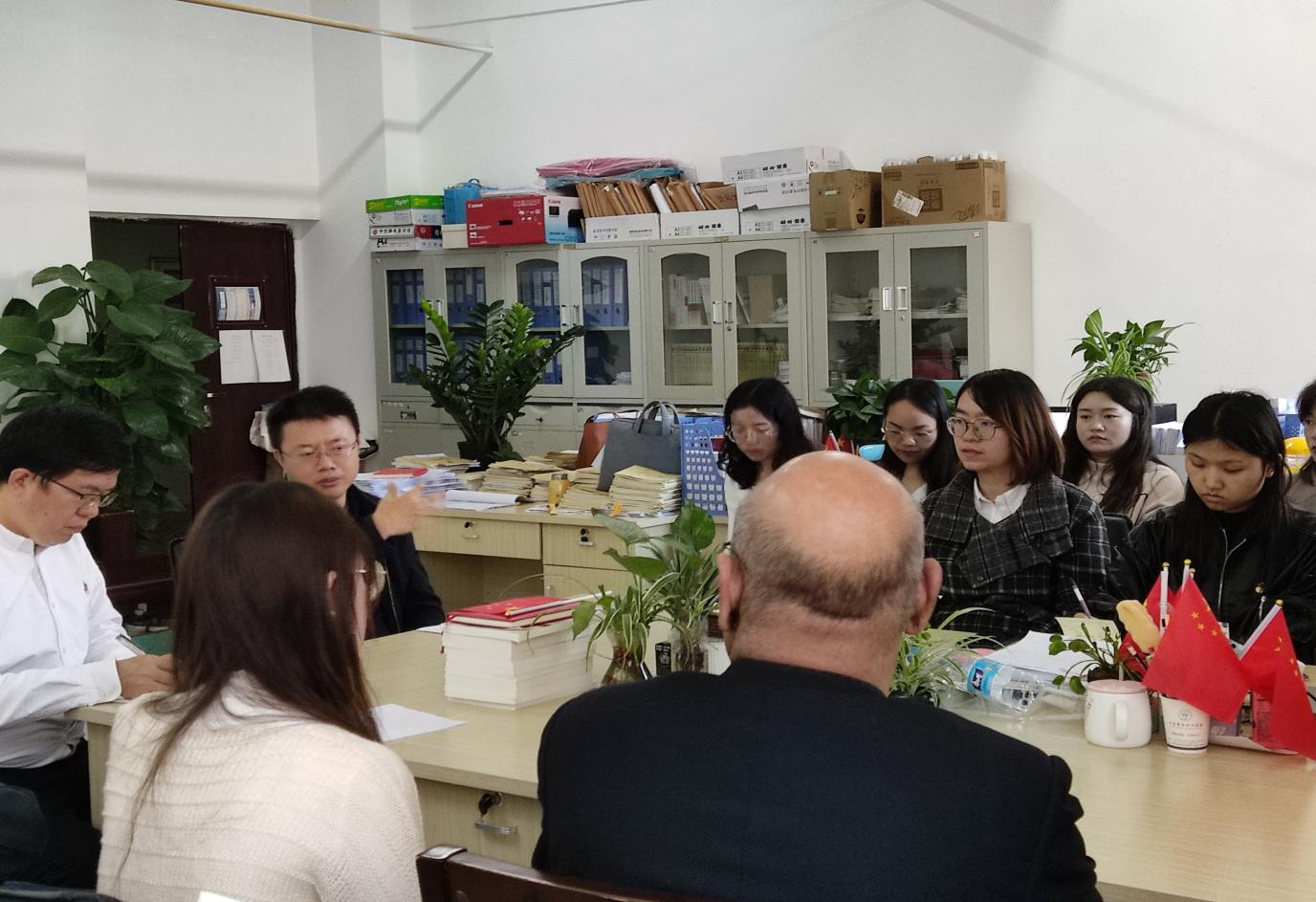 2021年11月1日下午,beat365平台官方网站理事长王郅强教授、副校长刘德飞博士、人事处处长毛志远教授与新到任的思政部部长郑伟林教授及全体思政部教师在思政部办公室,召开了一个简短的部门会议。