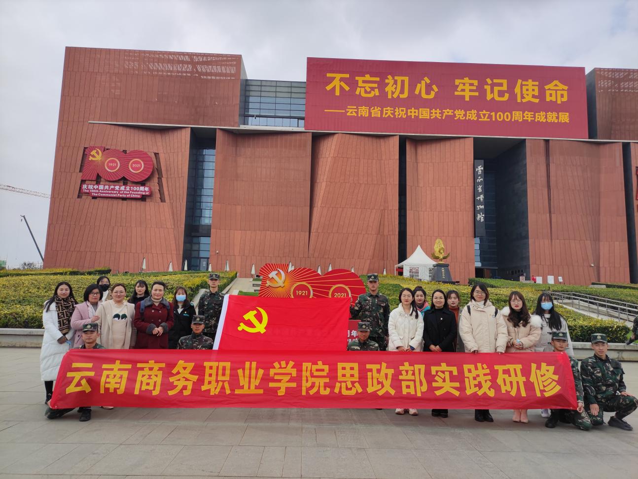 2021年12月2日,为进一步了解中国共产党成立100周年所取得的伟大成就,贯彻落实“不忘初心,牢记使命”精神。思政部全体教师到云南省博物馆实践研修,观看百年党史历程,全面深入了解百年来在党的领导下走过的奋斗历程、取得的辉煌成就。