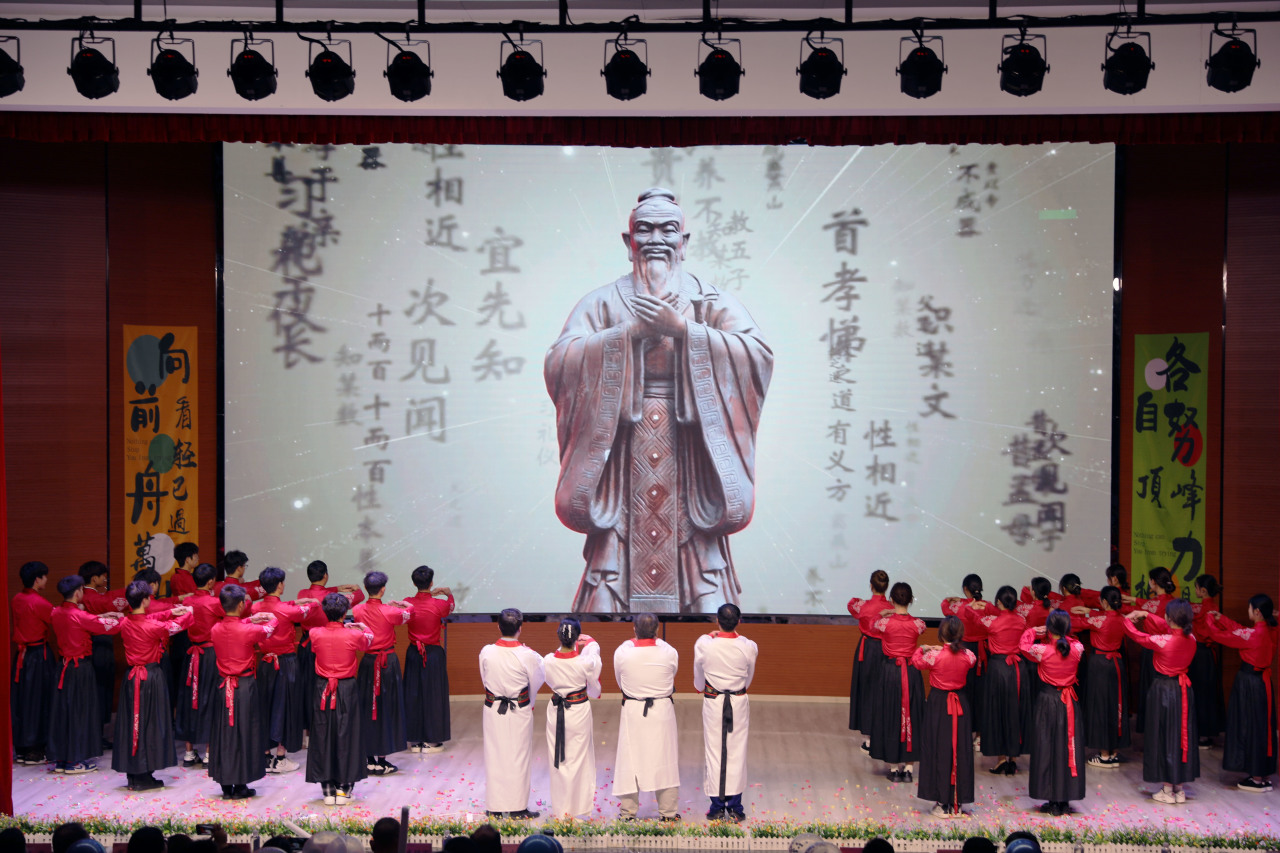 教师代表黄会端上台致辞。师者勉励学子勤学奋进,学子立志不负时光,期望与梦想是今晚的华章。
