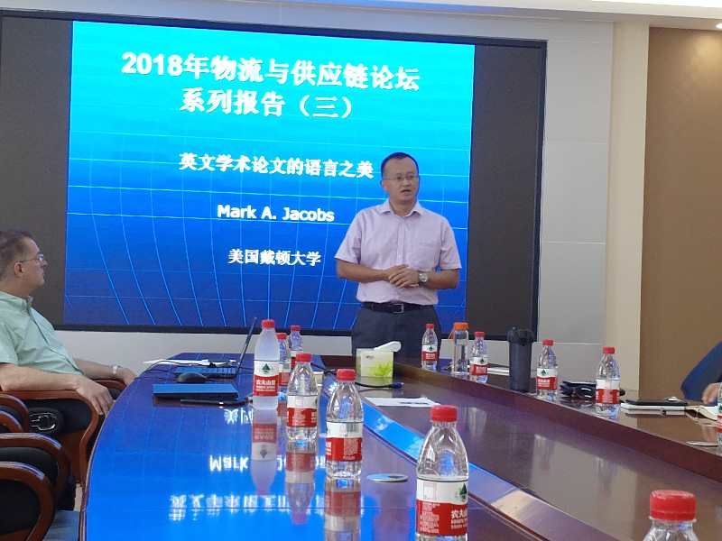 8月2日上午,美国戴顿大学副教授Mark A. Jacobs应邀在院201会议室作了题为《英文学术论文的语言之美》的学术报告,本次报告会为学院物流与供应链论坛系列报告之一。我校黄河学者余万涛、物流管理系支部书记宋永涛、系主任杨洁辉及物流管理系全体教师参与本次报告会,报告会由余万涛主持。Mark A. Jacobs副教授介绍了在论文写作过程中理论的重要性,举例说明了不同理论支撑会得出不同的结论,并通过举例详细...