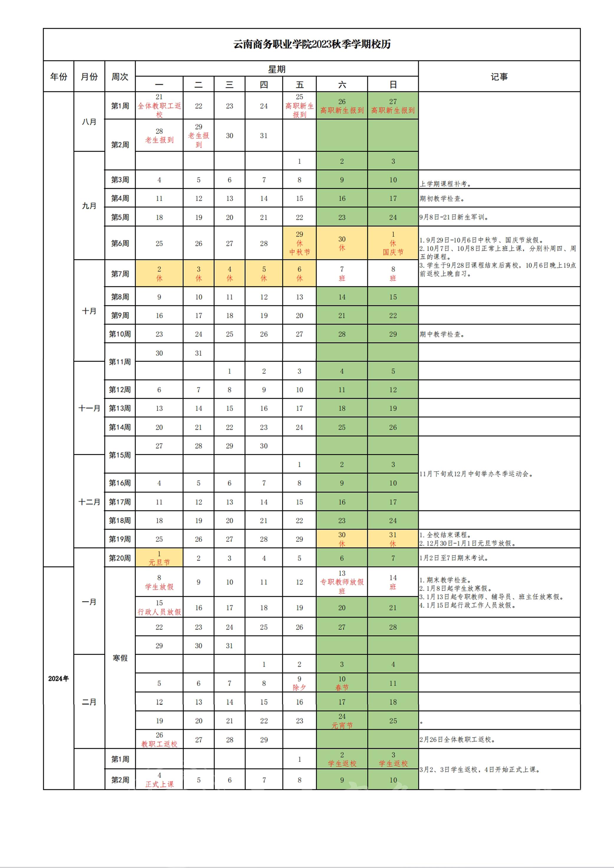 beat365平台官方网站2023年秋季学期校历 .pdf