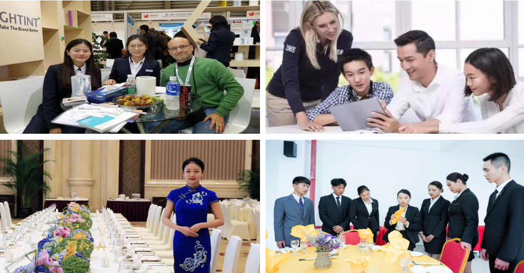 四、就业方向:毕业生就业单位主要面向英语教学培训、国际贸易业务人员、英语商务翻译、对外商务助理、高级文员、英语导游、酒店涉外接待人员等。