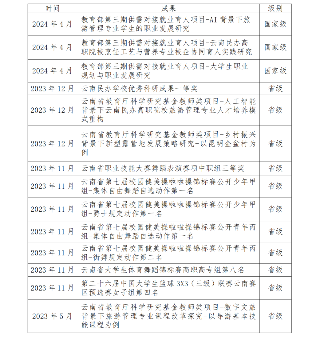 交通旅游学院,紧紧围绕云南省文化旅游产业定位,立足“食住行”综合人才培养,坚持“产教融合、校企合作、招生-招工一体化”的发展思路,搭建“底层平台服务基础、中层分立模块化、高层互选能力拓展”课程体系,通过对学生外形气质、沟通表达、服务意识的培养,以“双元育人、双重身份,交互训教、工学交替”的现代学徒制人才培养模式,打造“高颜值、高效率、高素质”的具有国际视野的技术技能人才。