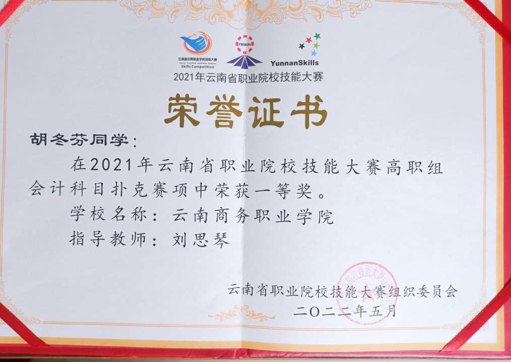 中级税务师考评员,会计师,在云南省职业技能大赛三等奖2项,在行业技能大赛中荣获奖数项,主持校级精品课程和思政课程的建设。